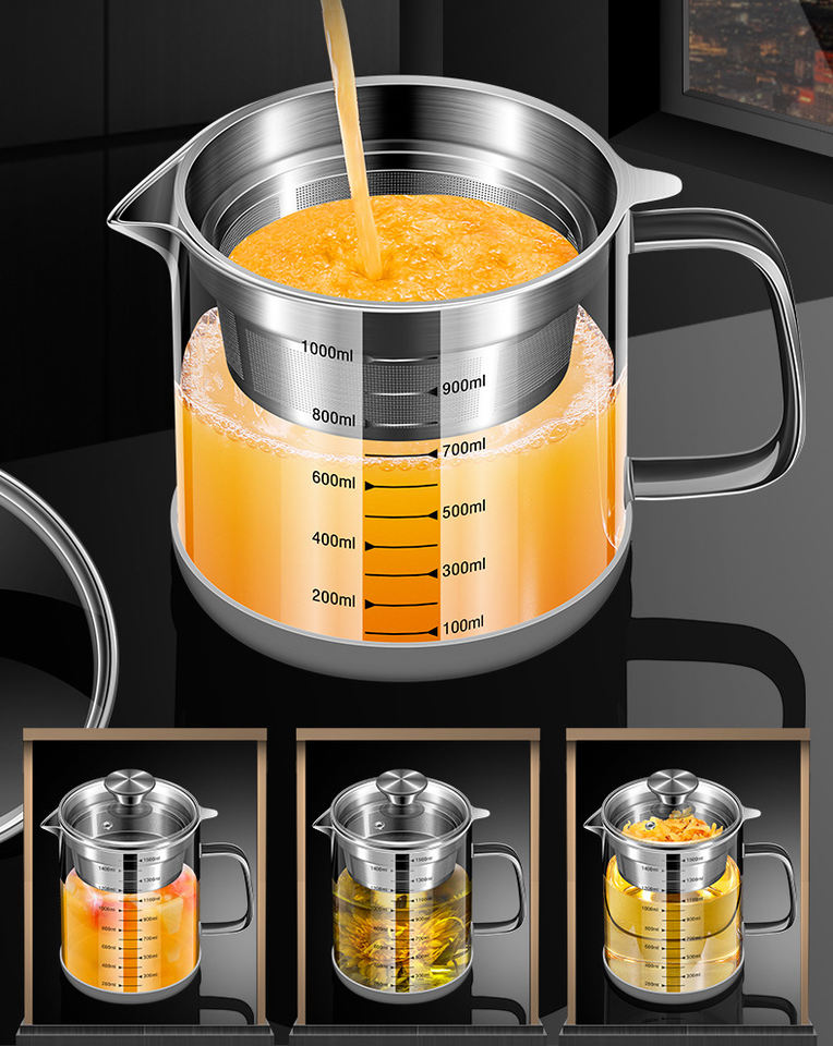 กระป๋องแก้วกรองน้ำมันแบบตาข่ายละเอียด ป้องกันฝุ่น ขนาด 1000 มล. รุ่น Syh216 สำหรับขายส่ง ใช้สำหรับกรองน้ำมันทอด หม้อกรองน้ำมันเบคอน