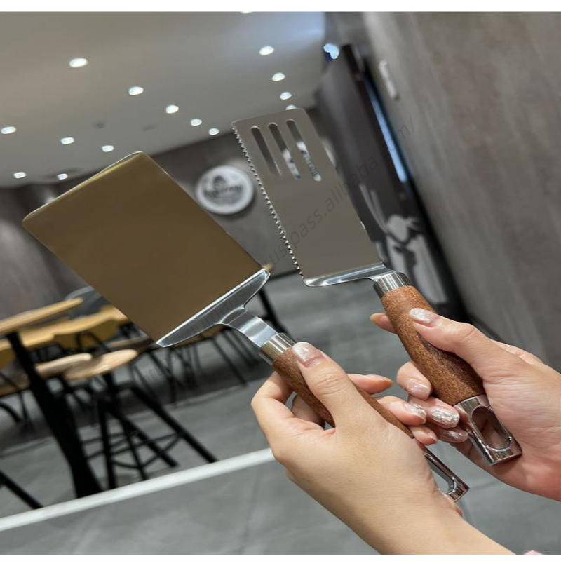 ขายส่ง Syh259 อุปกรณ์ครัวและบ้าน 2024 ชุดอุปกรณ์ปิ้งย่างสเตนเลสสตีลแบบมืออาชีพ ตะหลิวแบนสำหรับปิ้งย่าง ตะหลิวพิซซ่าพร้อมด้ามไม้