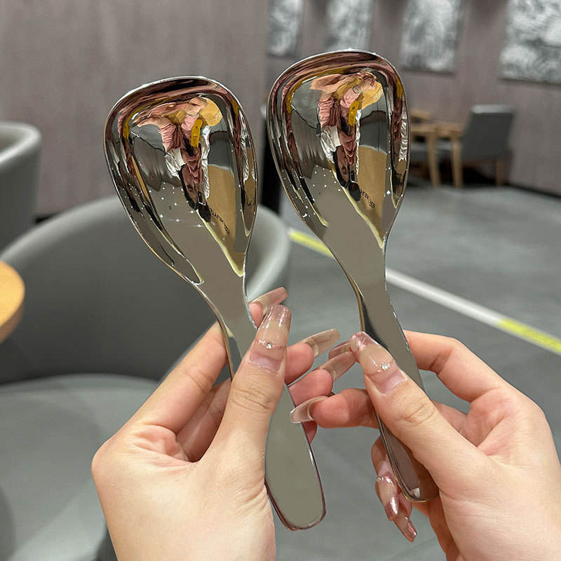 ช้อนซุปทรงกลมแบบแบน ยี่ห้อ Syh271 คุณภาพสูง ผลิตจากโลหะ 304 สไตล์เกาหลี สำหรับเสิร์ฟข้าวและซุป ขายส่ง
