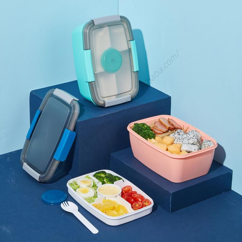 กล่องอาหารกลางวันซิลิโคนแบบพับได้ 2 ช่อง ปลอดสาร BPA รุ่น Syh674 สำหรับขายส่ง ใช้กับไมโครเวฟและเครื่องล้างจานได้ พร้อมฝาปิด