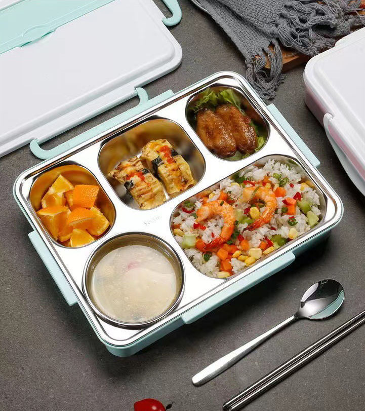 กล่องข้าวพกพา Syh688 แบบขายส่ง มี 5 ช่อง ทำจากสแตนเลส 304 สำหรับบรรจุอาหาร ใช้ในสำนักงานหรือโรงเรียน