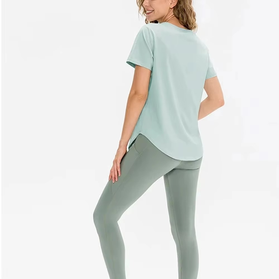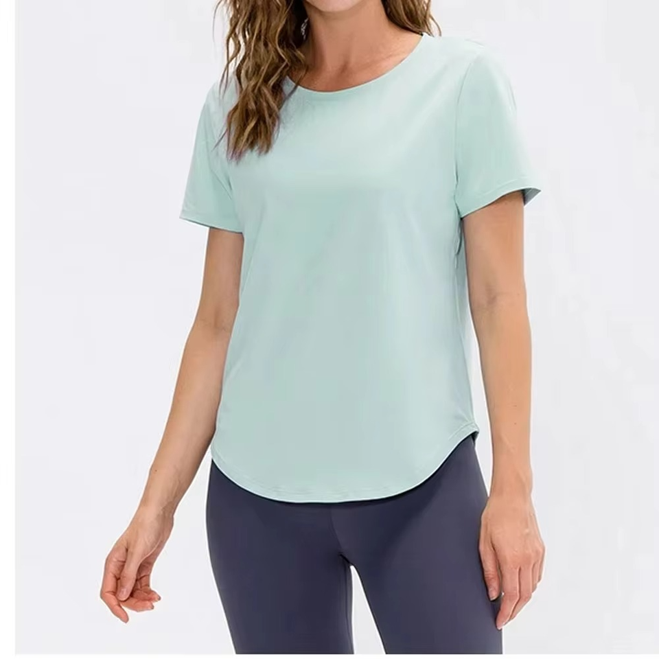 เสื้อยืดขายส่ง เสื้อยืดออกกำลังกายแฟชั่นผู้หญิง ผ้าฝ้ายสีเขียวมิ้นท์ สำหรับสาวๆ ระบายอากาศได้ดี ผลิตในปากีสถาน