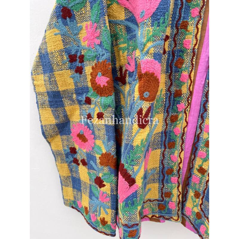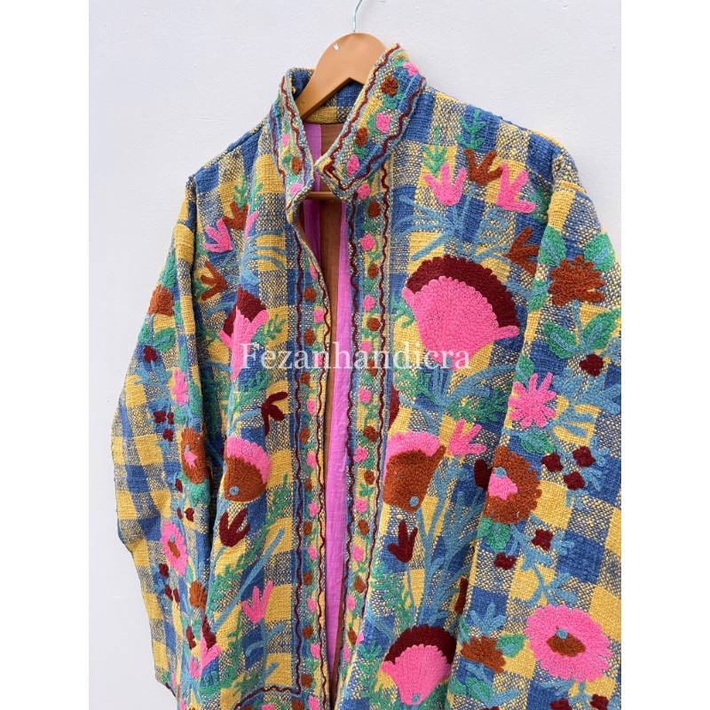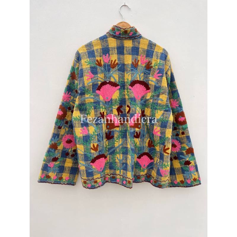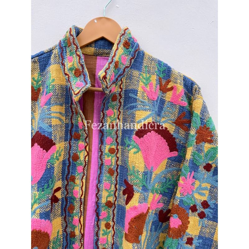 เสื้อแจ็คเก็ตผ้าสไตล์โบฮีเมียนของผู้หญิงเสื้อโค้ทกันหนาวทำด้วยมือพร้อมซับในคอตตอนถักสำหรับปาร์ตี้ฤดูใบไม้ร่วงขายส่ง