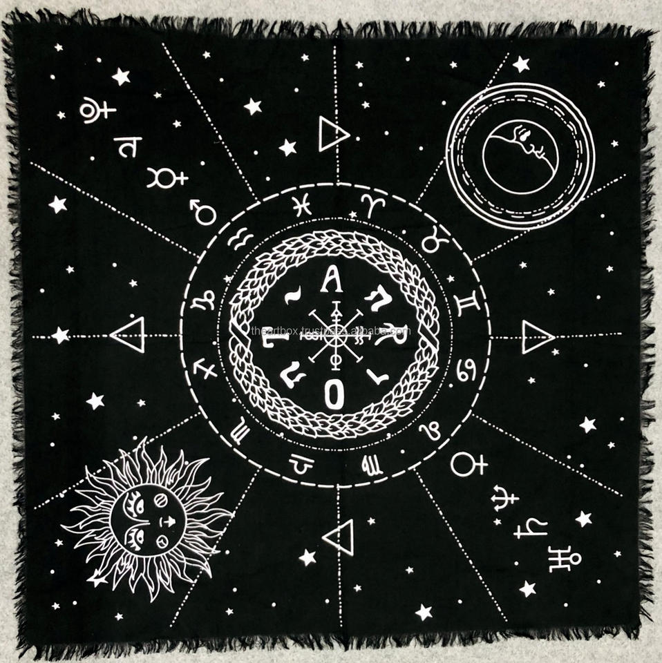 ผ้าปูโต๊ะ12กลุ่มดาวดวงอาทิตย์และดวงจันทร์จักรวาลคาถาไพ่ทาโรต์กระจายของตกแต่งโต๊ะ