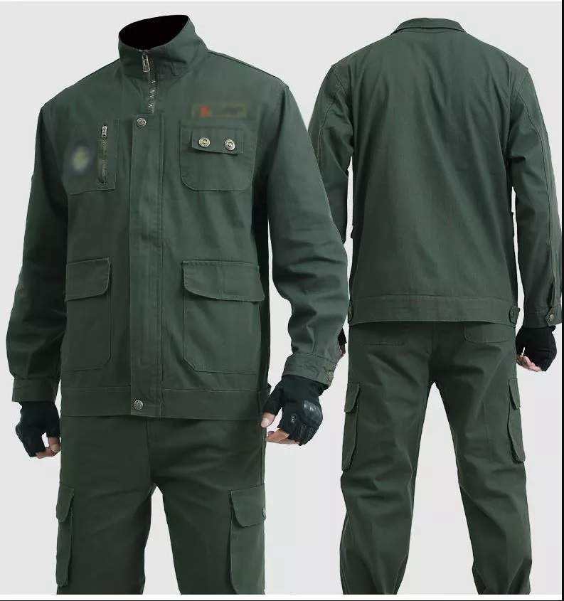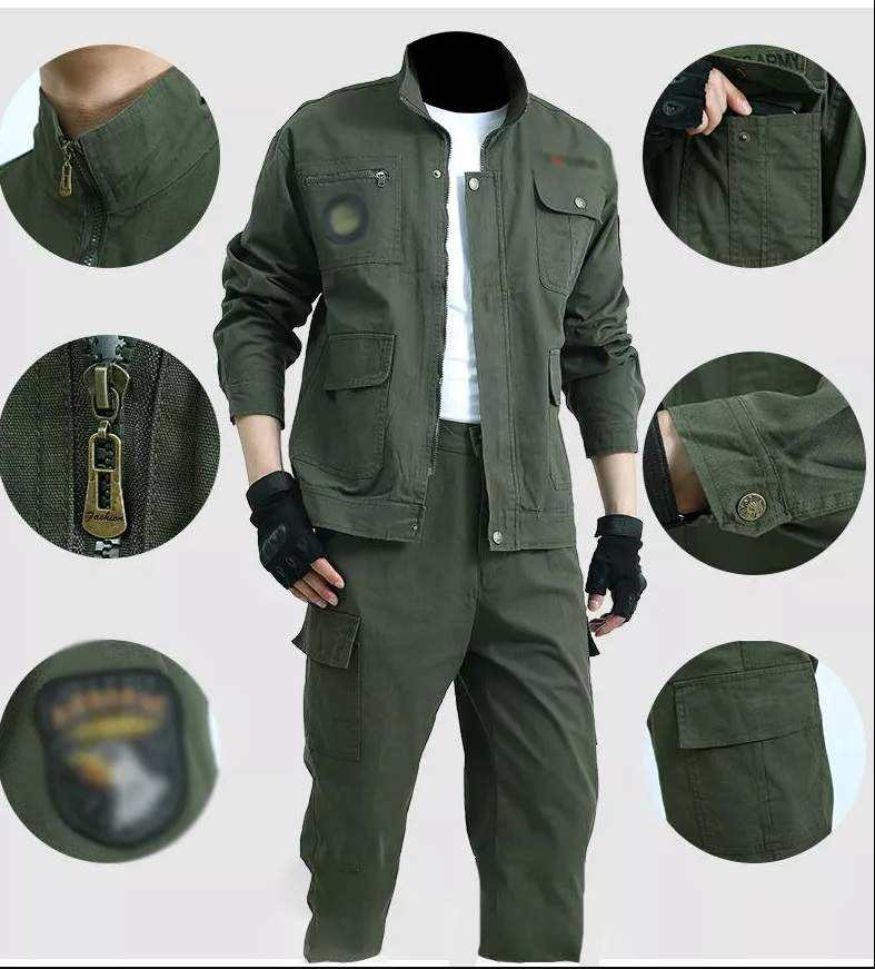 ชุดยูนิฟอร์มยุทธวิธีขายส่ง กางเกงรัดรูปสำหรับเจ้าหน้าที่รักษาความปลอดภัย ชุดทำงานวิศวกรสำหรับผู้ชาย เสื้อแจ็คเก็ตสีเขียวพร้อมกางเกงคาร์โก้