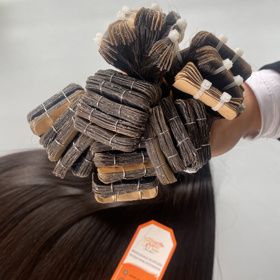 ขายส่งเทปต่อผม100% มนุษย์ผมรัสเซียเต็มความยาว8-32นิ้วเทปในส่วนขยายของผม