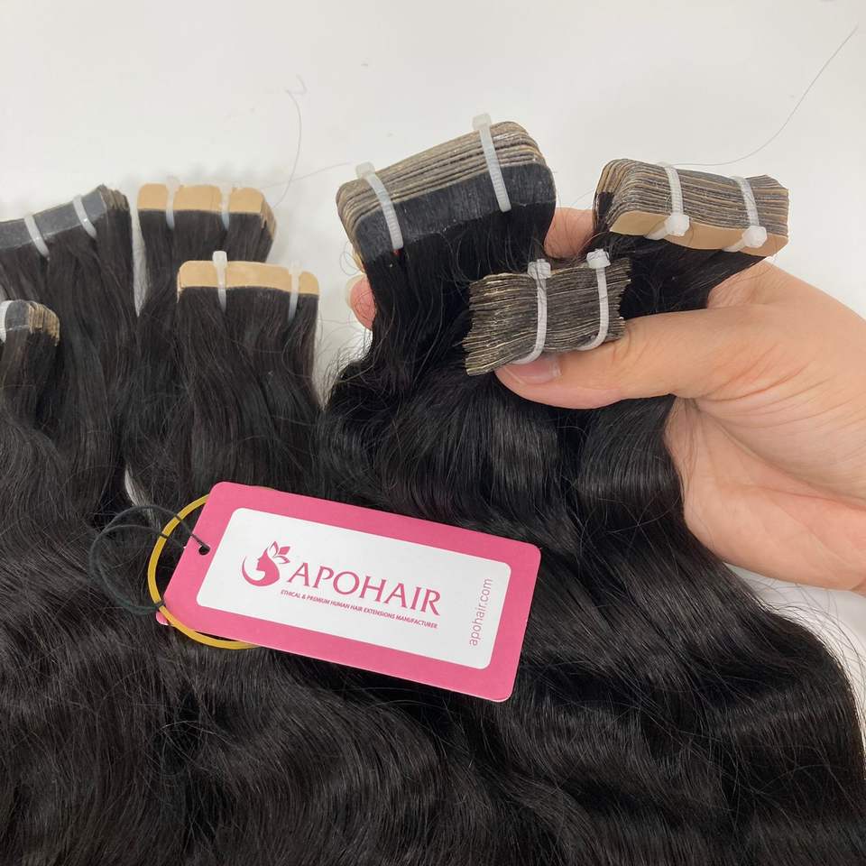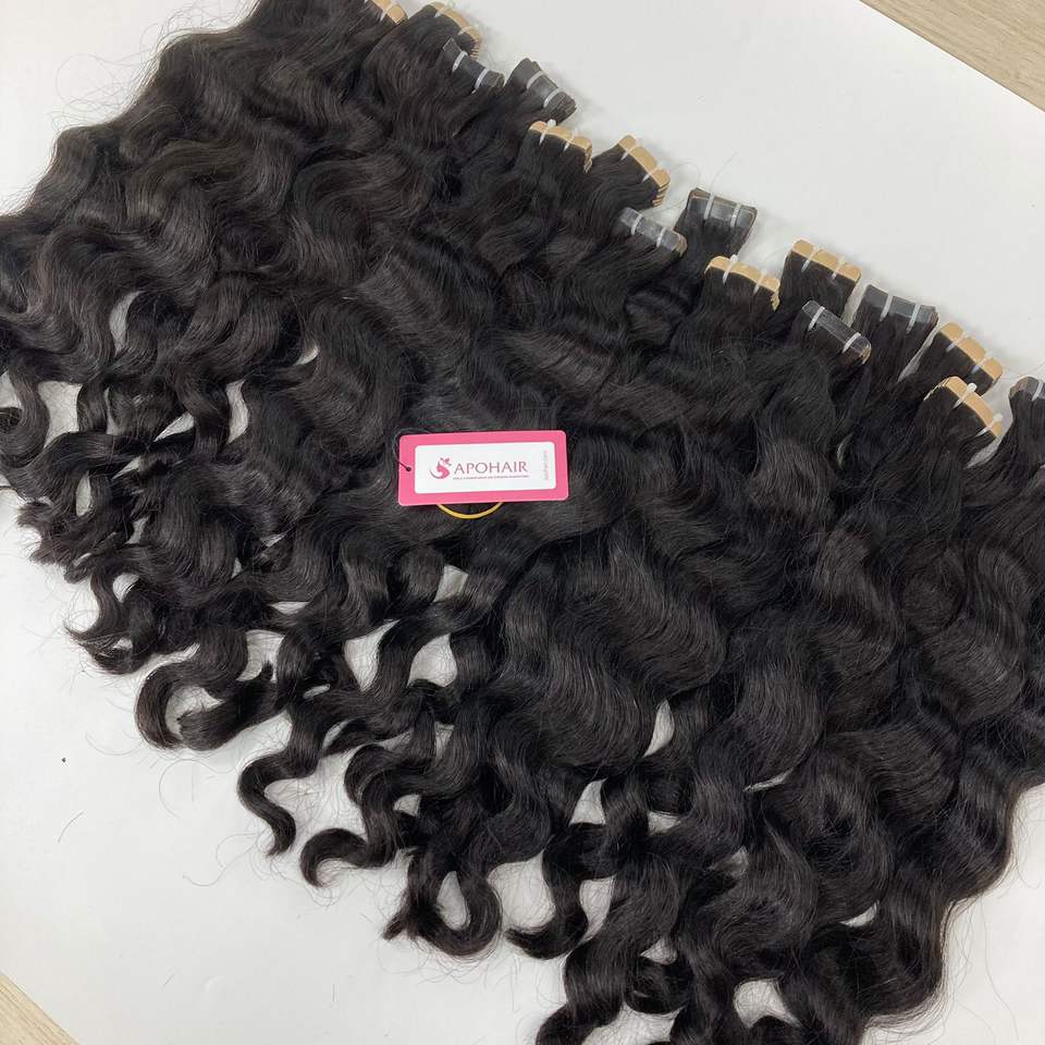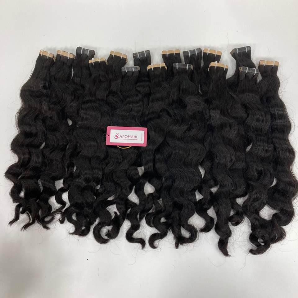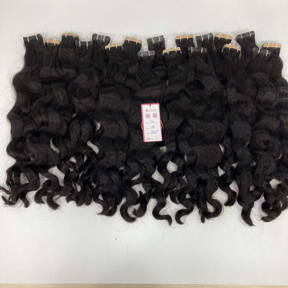 ผมต่อแบบเทปผมมนุษย์เป็นลอนคลื่นธรรมชาติแบบม้วนสองชั้น
