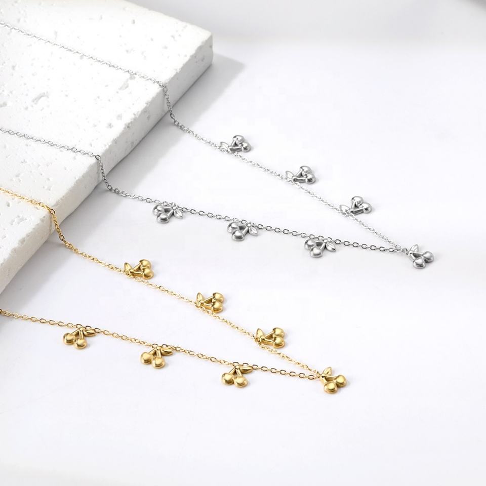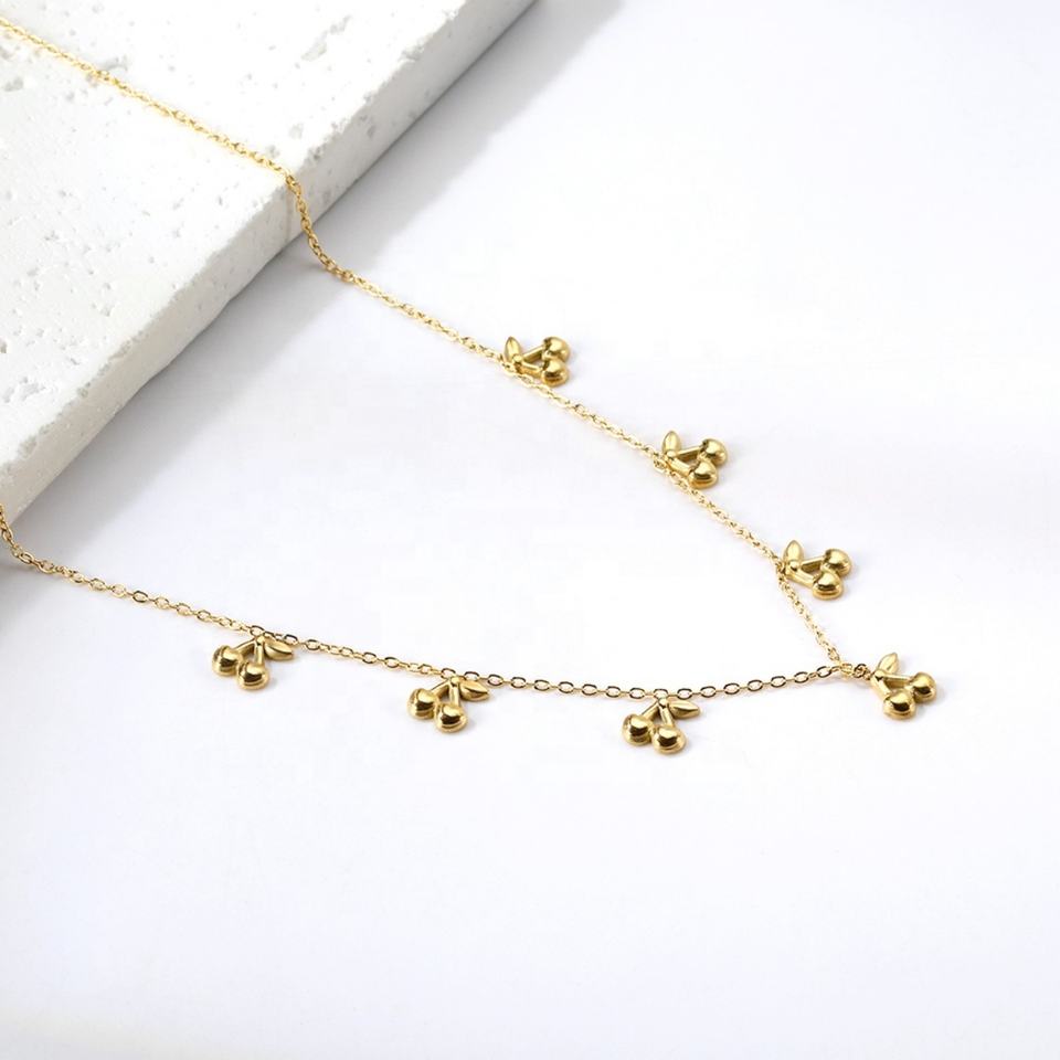 สร้อยคอจี้สแตนเลสสตีลชุบทอง 18K แบบกันน้ำ ไม่หมอง พร้อมจี้รูปเชอร์รี่ ดีไซน์สวยหรู ขายส่ง