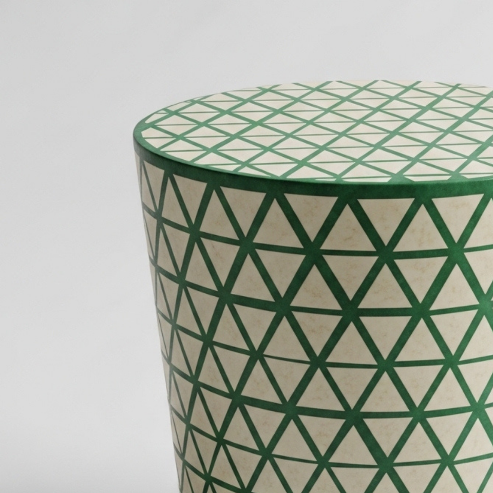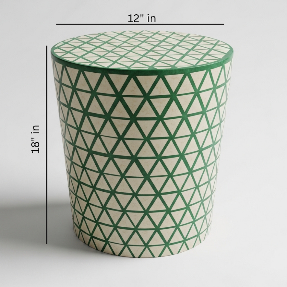 โต๊ะข้างทรงกลมสีเขียวอมฟ้าแบบขายส่ง ตกแต่งด้วยกระดูกฝังลายเกล็ดปลา ทำด้วยมือ ใช้เป็นเก้าอี้เสริมได้