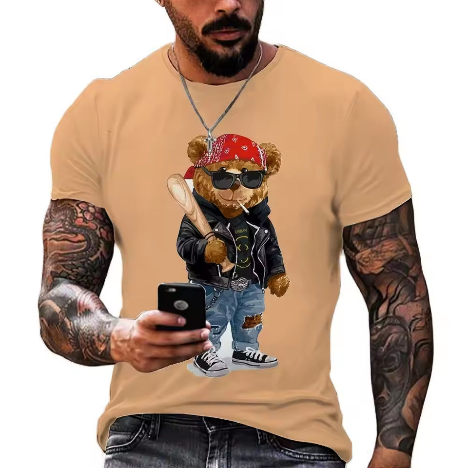 เสื้อยืดพิมพ์ลายหมีเท็ดดี้สำหรับผู้ชาย ขายส่ง แบบลำลอง พิมพ์ลายดิจิทัล ผ้าถัก โพลีเอสเตอร์ 100% แห้งเร็ว เทรนด์สตรีทฤดูร้อน ฮิปฮอป