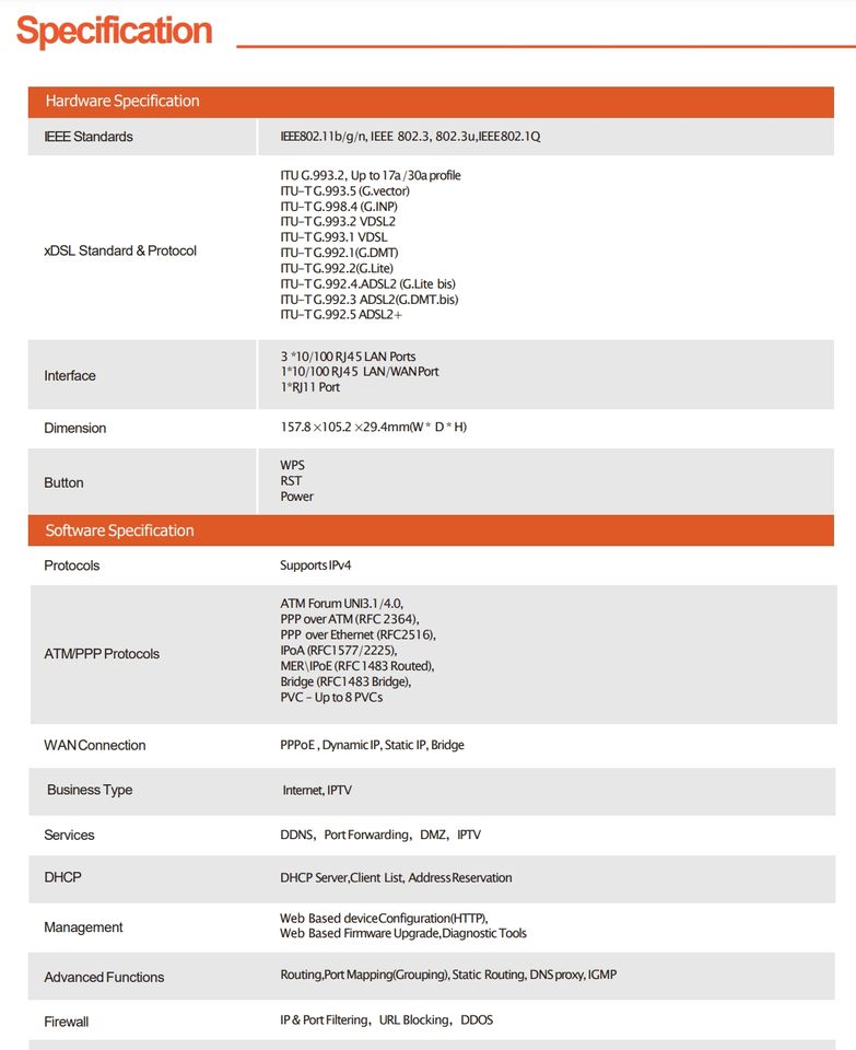 อินเตอร์เฟซ:4x100พอร์ต LAN 1พอร์ต xRJ11