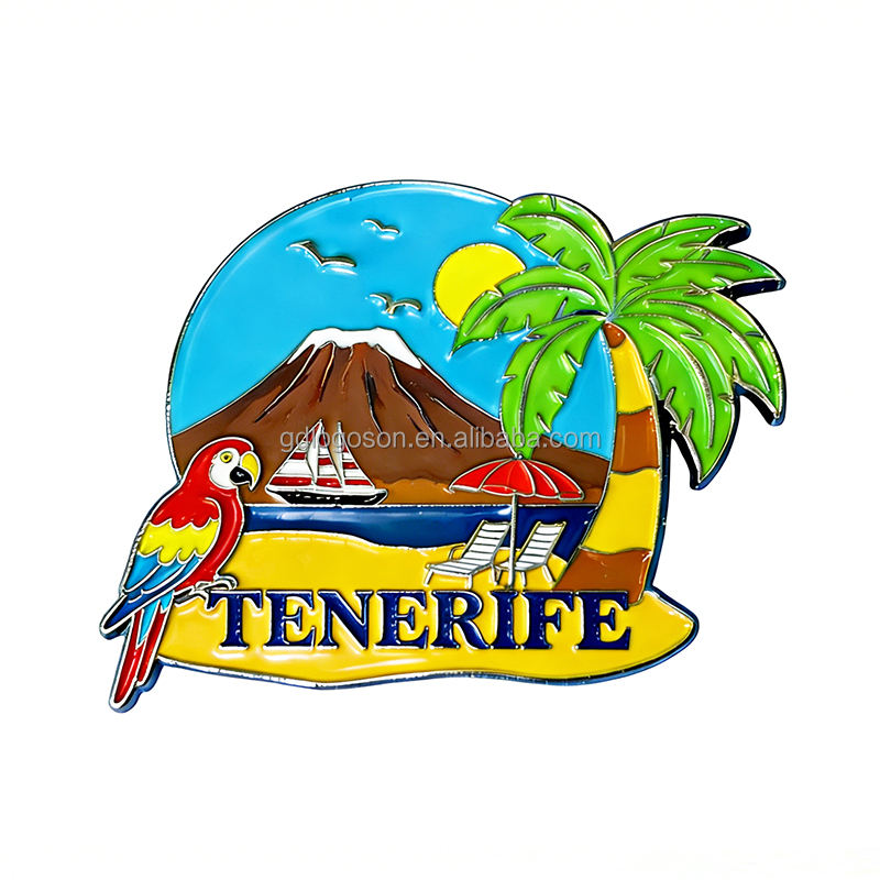 แม่เหล็กติดตู้เย็นลายท่องเที่ยวเทเนริเฟ่ ของที่ระลึกงานขายส่ง - แม่เหล็กโลหะรูปต้นปาล์ม นกแก้ว ชายหาด ของขวัญ