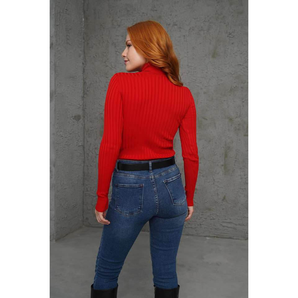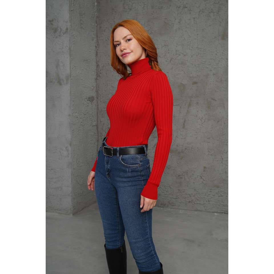 เสื้อคาร์ดิแกนถักคอเต่าสีแดงบางสำหรับผู้หญิง ลายริบด้านหน้า พร้อมโลโก้ แบบลำลอง ติดกระดุม ลายพิมพ์ สำหรับฤดูใบไม้ร่วง/ฤดูหนาว ขายส่ง