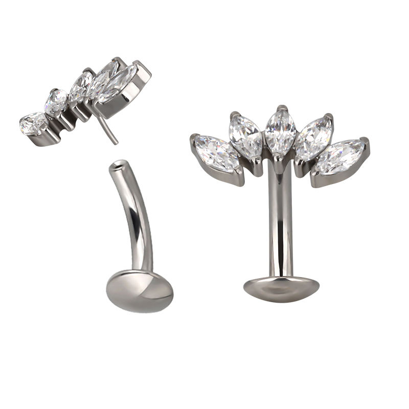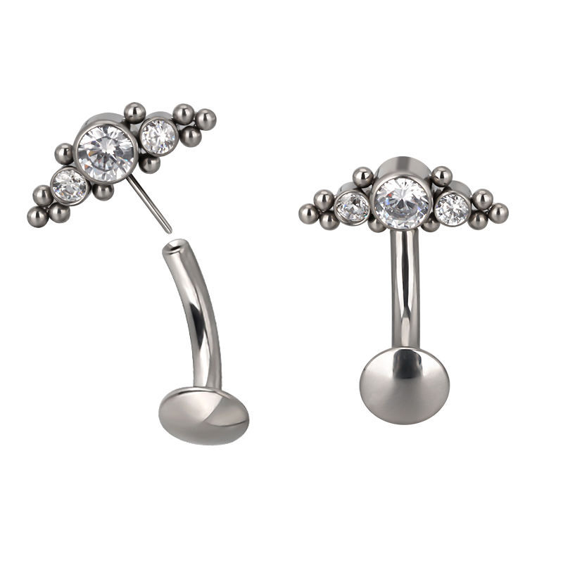 แหวนไทเทเนียมแบบไม่มีเกลียวทรงปุ่มกดพร้อมหมุดปักฐานนูนเครื่องประดับแฟชั่นสำหรับเจาะร่างกาย