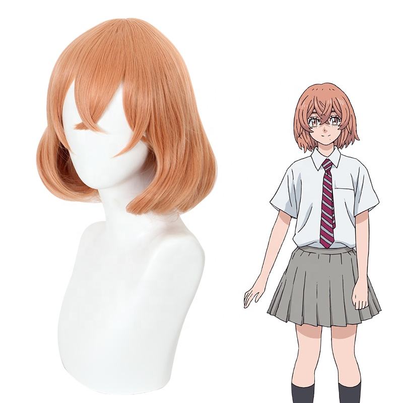 วิกผมอนิเมะ Tachibana Hinata สั้น35ซม. สีส้มคอสเพลย์อนิเมะที่ทนต่อการสังเคราะห์