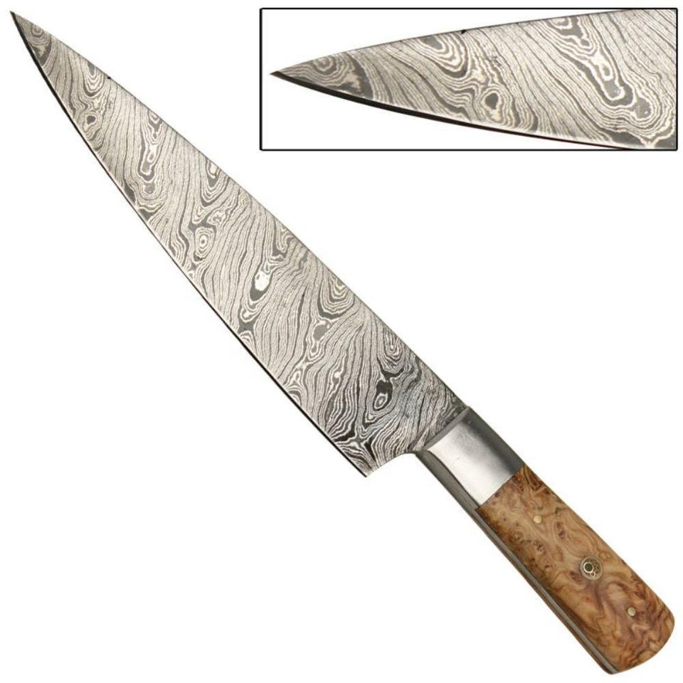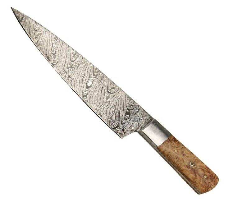 มีดทำครัวเหล็กดามัสกัสสำหรับผู้ชายด้ามจับไม้ทำจากคาร์บอน