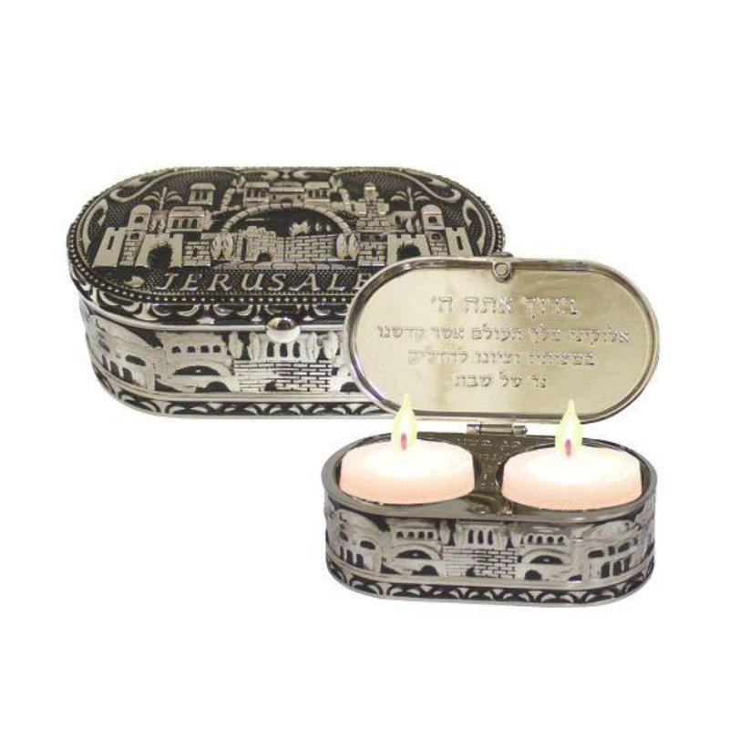 เชิงเทียนสำหรับเดินทางแบบสองเทียน ดีไซน์คลาสสิก ทำจากโลหะ คุณภาพสูง สำหรับศาสนายิวในวันชาบาต ขายส่ง