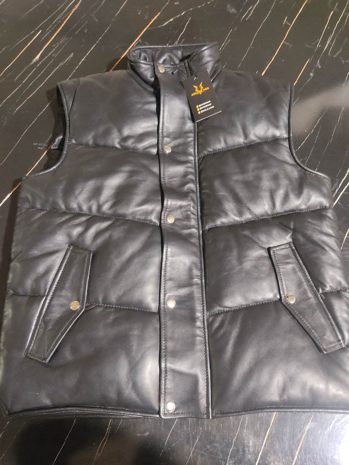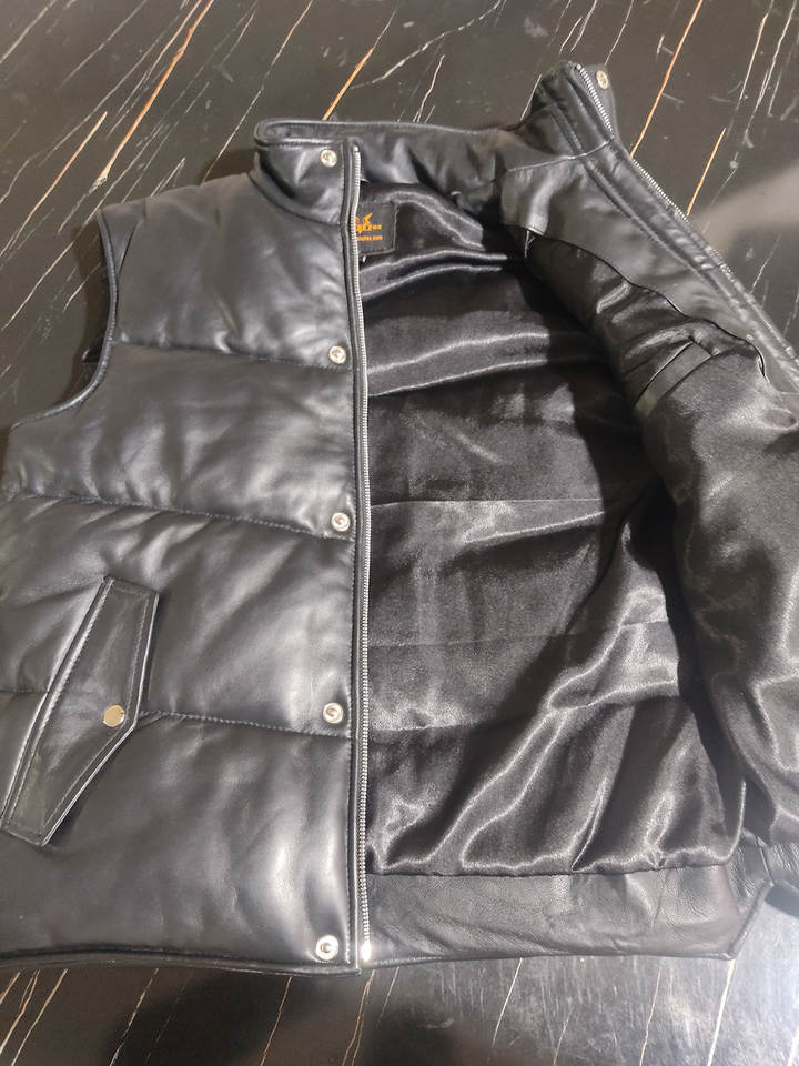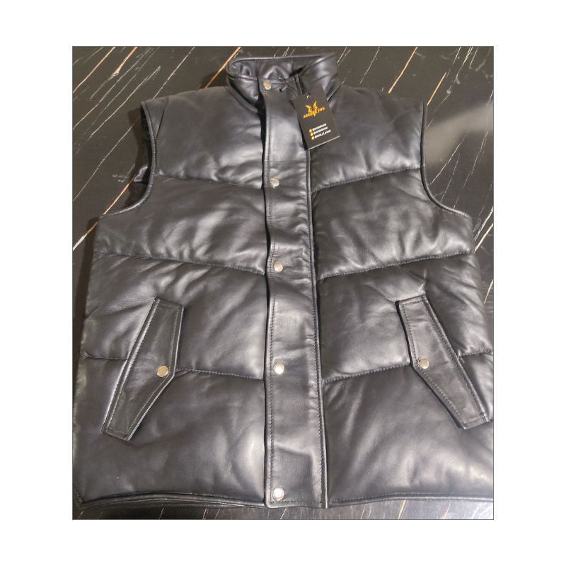 เสื้อกั๊กหนังแท้คุณภาพสูงสำหรับผู้ชาย สไตล์สตรีทแวร์ เสื้อกั๊กพัฟเฟอร์สำหรับฤดูหนาว สามารถปรับแต่งได้ เสื้อกั๊กหนังแกะสุดเท่
