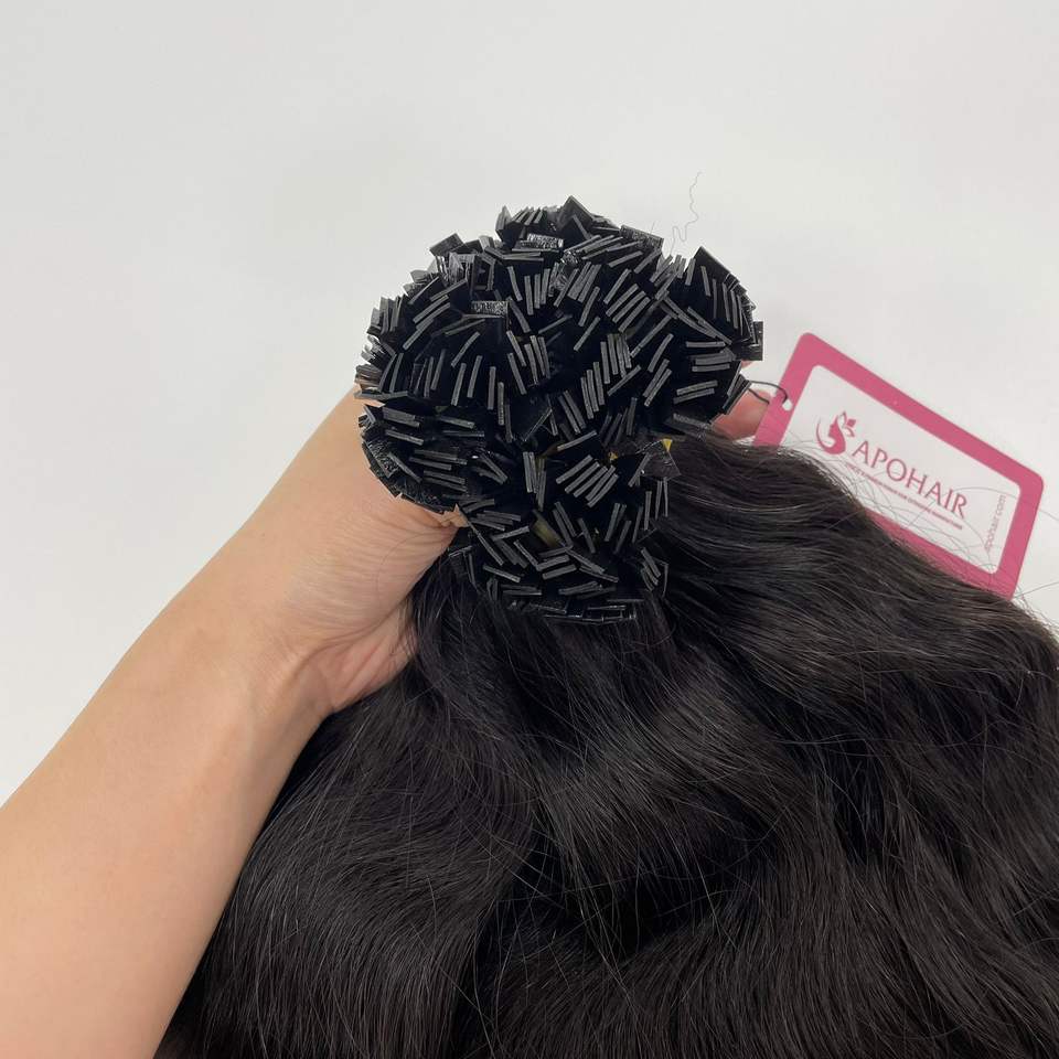ผมต่อเวียดนามแท้ คุณภาพสูง แบบ 1B ปลายแบน ยาว 20 นิ้ว ผมเวอร์จินแท้ แบบเรมี่ ลอนธรรมชาติ ต่อแบบเครื่อง ดับเบิ้ลเวฟ สีดำ ขายส่ง