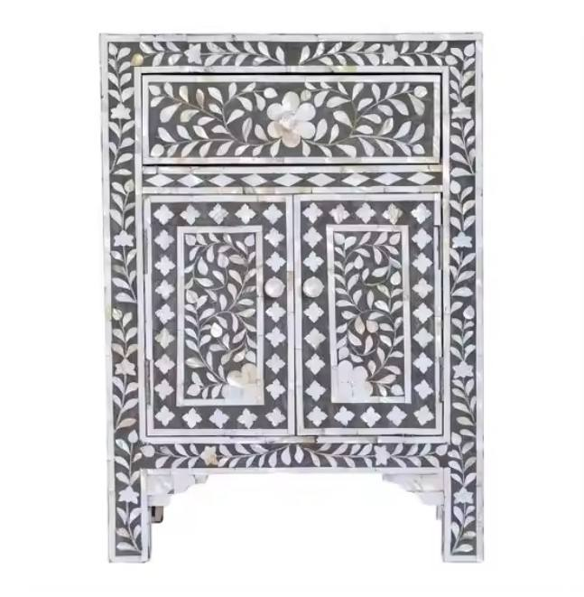โต๊ะข้างเตียงห้องนอนแบบฝังกระดูกข้างเตียงดีไซน์ลายดอกไม้สำหรับบ้านและห้องนั่งเล่น