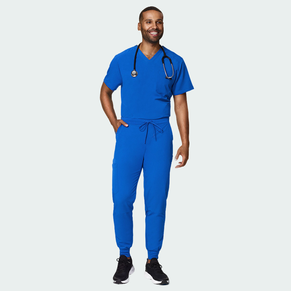 เครื่องแบบพยาบาลสำหรับผู้ชายชุดเครื่องแบบสครับขัดทางการแพทย์ผ้าโพลีเอสเตอร์สแปนเด็กซ์