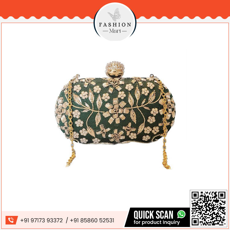 กระเป๋าคลัทช์ทำมือสไตล์อินเดียสำหรับผู้หญิงและเด็กผู้หญิงคลัทช์ลูกปัดลายดอกไม้สีเขียว