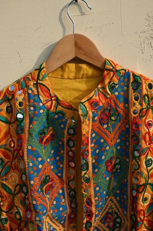 เสื้อแจ็คเก็ตอินเดียแบบดั้งเดิมขายส่ง สไตล์โบฮีเมียน ฮิปปี้ ทำมือ วินเทจ ผ้าฝ้าย เสื้อโค้ทผู้หญิง แจ็คเก็ตโบฮีเมียน ลายพื้นเมืองฟุลคาริ