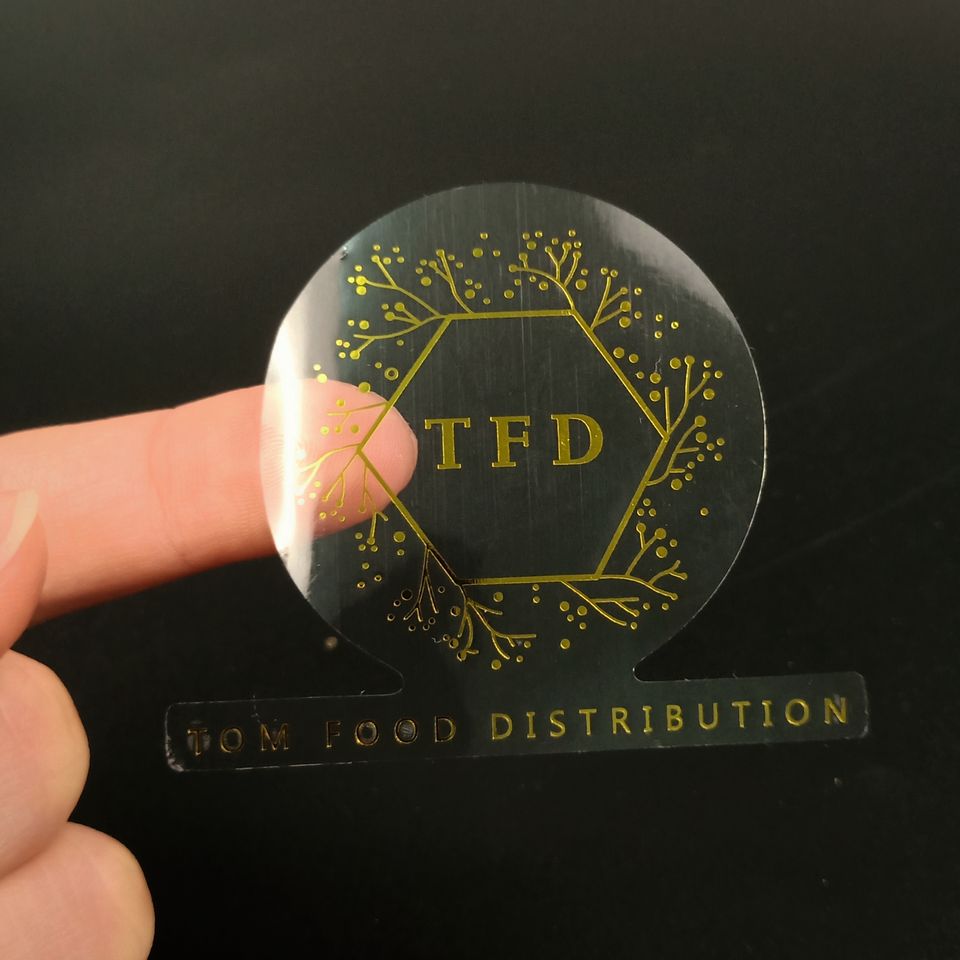 สติกเกอร์ติดสินค้าพิมพ์ลายทองคำเปลวแบบกำหนดเองสำหรับขายส่งพร้อมโลโก้แบรนด์