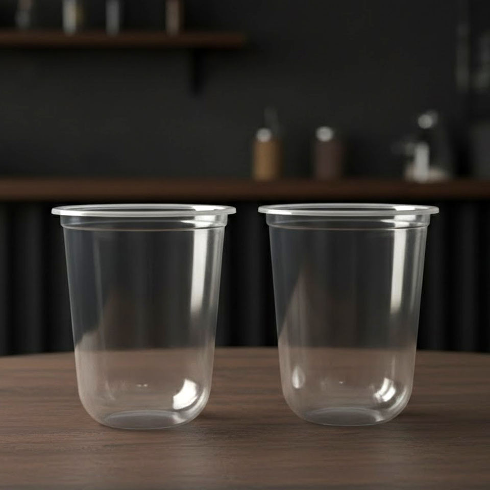 แก้วพลาสติก PP แบบใช้แล้วทิ้ง ใส หนาผนังชั้นเดียว ขนาดเส้นผ่านศูนย์กลาง 95 มม. ความจุ 360 มล. 500 มล. 650 มล. 700 มล. สำหรับชานมไข่มุก ขายส่ง
