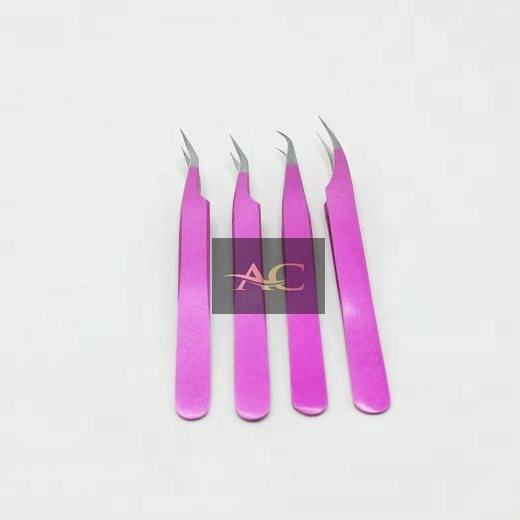 แหนบต่อขนตาสีชมพูใสปลายแหลมทำจากสเตนเลสแข็งแบบมืออาชีพปรับแต่งโลโก้ได้ตามต้องการ