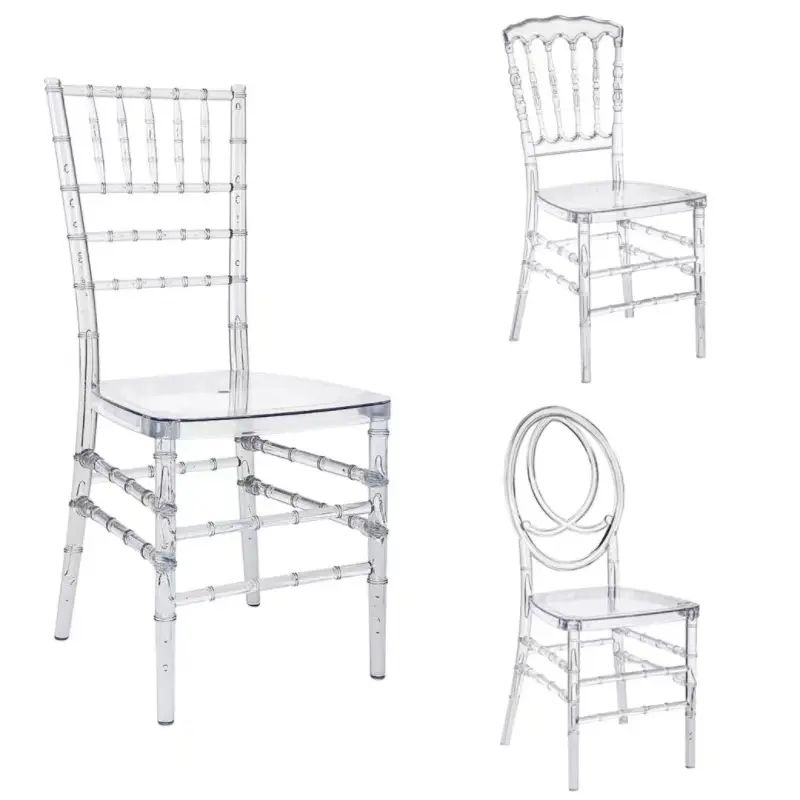 เก้าอี้งานแต่งงานโรงแรมอะคริลิคใสแบบขายส่ง รุ่นเฟนิกซ์ นาโปเลียน ชิวารี ทำจากเรซิ่นใส
