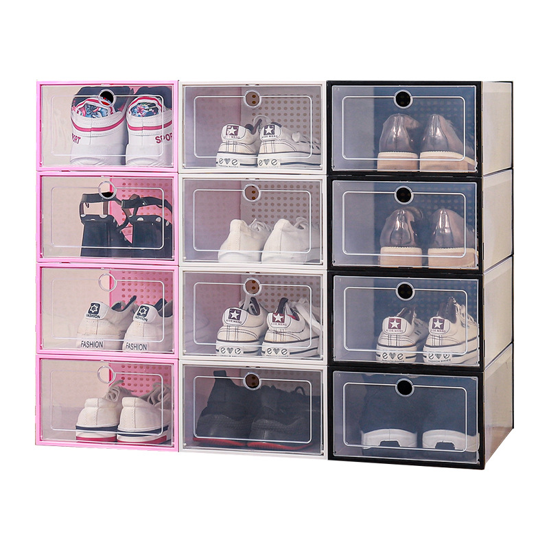กล่องรองเท้าใสแบบขายส่ง กล่องเก็บรองเท้าพลาสติกหนาพิเศษ ป้องกันฝุ่น ซ้อนกันได้ หลายแบบ