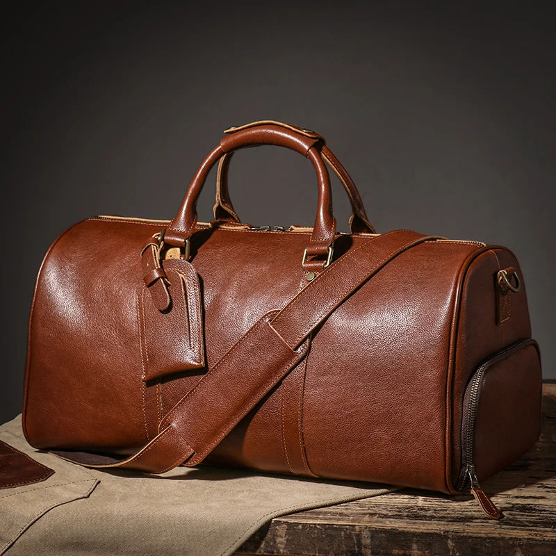 กระเป๋าเดินทางสำหรับชายหนังแท้ขนาดใหญ่แบบวินเทจ
