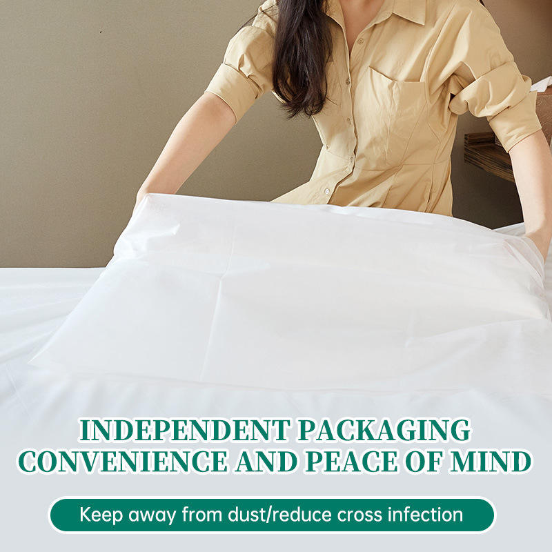 ผ้าคลุมเตียงแบบใช้แล้วทิ้งสำหรับการเดินทาง ปลอดภัยสำหรับการเดินทาง ใช้ได้กับเตียง ผ้าห่ม/ปลอกผ้านวม ปลอกหมอน สำหรับโรงแรม การเดินทาง และใช้ในบ้าน (ขายส่ง)