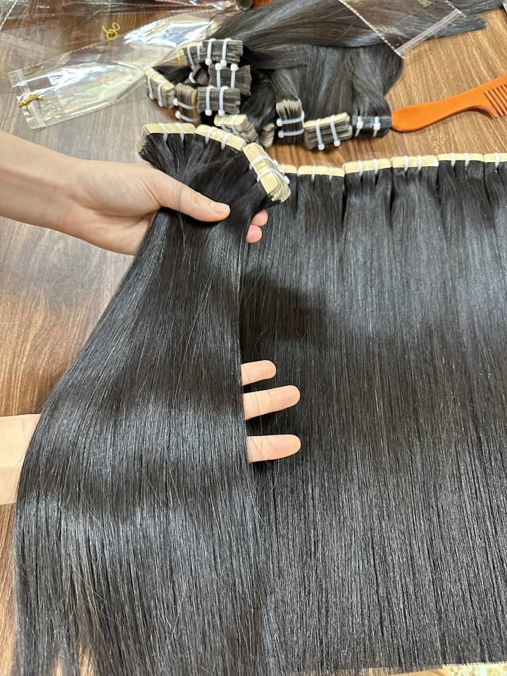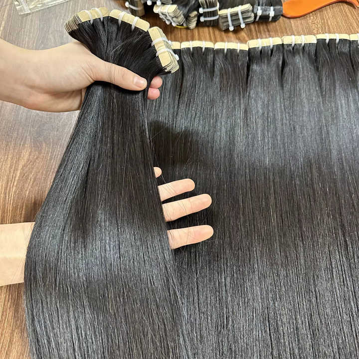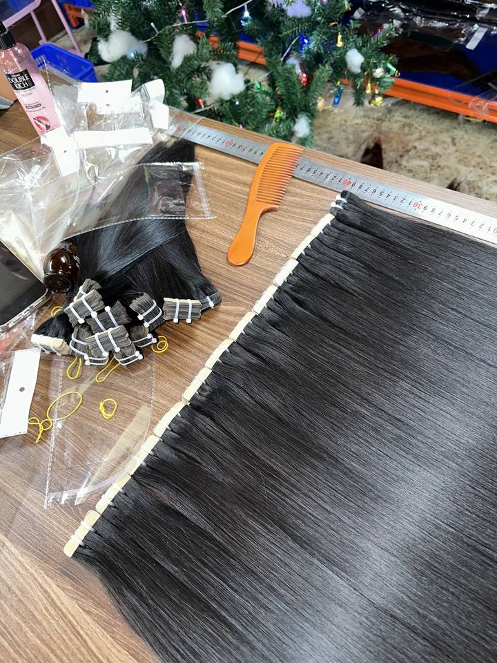 ขายส่งยอดนิยม 2024 สีดําตรงเทปผมดิบเวียดนามมนุษย์ผมสําหรับการฝึกอบรมหัวสําหรับผู้หญิงสีดําหญิงรุ่น
