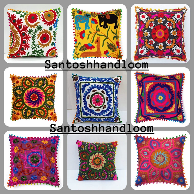 ปลอกหมอนอิงปักลายอินเดียแบบขายส่ง งานฝีมือทอมือสไตล์ซูซานี ลายชนเผ่า โบโฮ ฮิปปี้ สำหรับเทศกาลต่างๆ