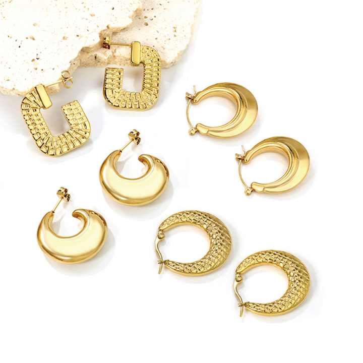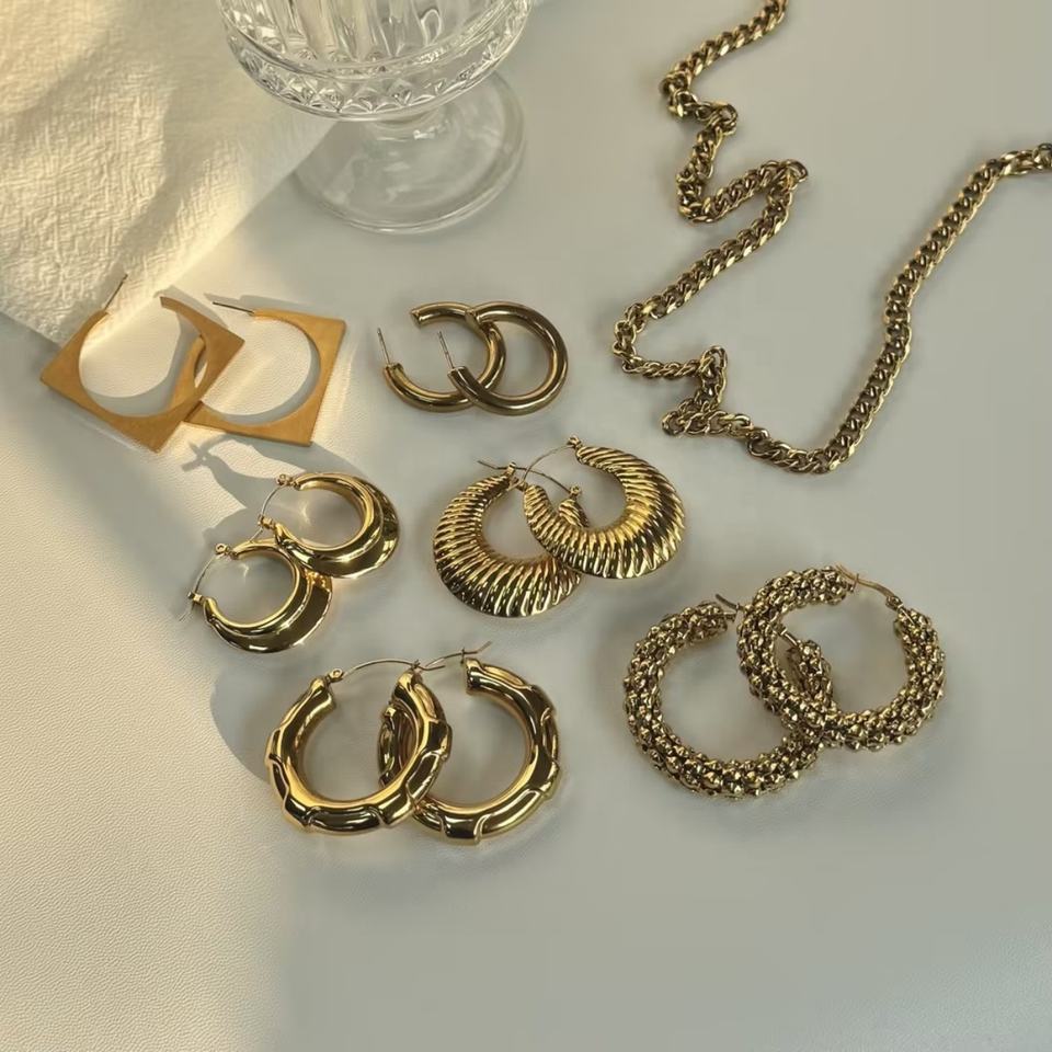 ต่างหูห่วงใหญ่แบบหนา ชุบทอง 18K สแตนเลส ไม่ก่อให้เกิดอาการแพ้ สำหรับผู้หญิง ขายส่งตามเทรนด์