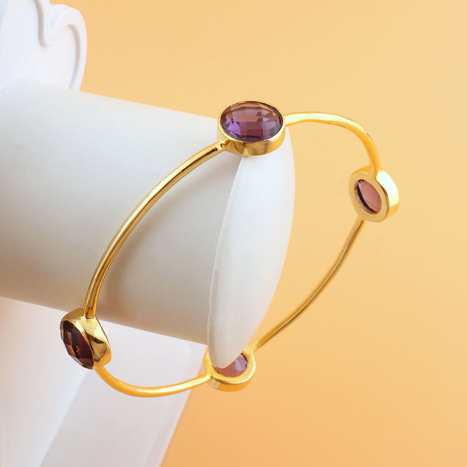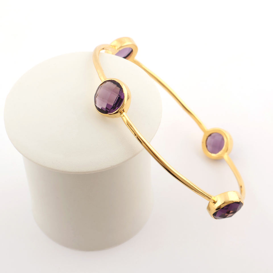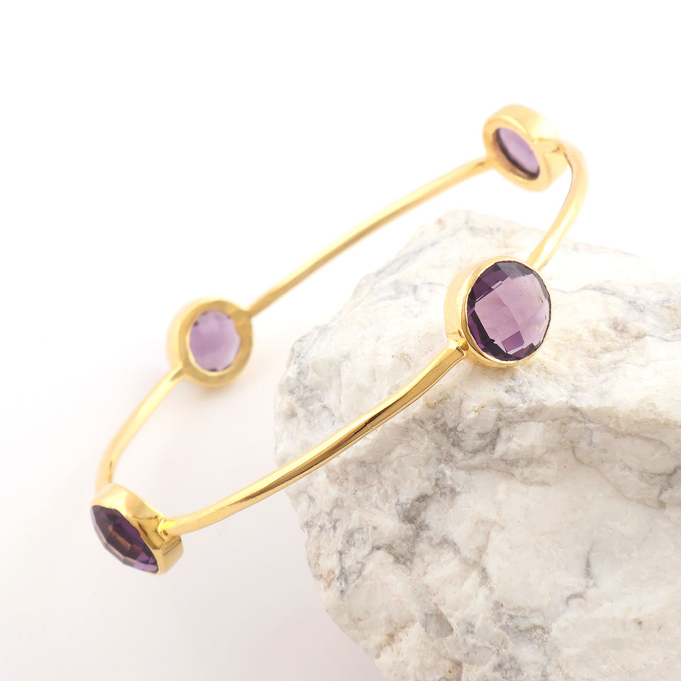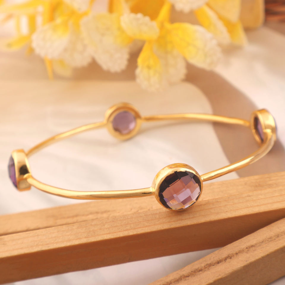 คอลเลกชันอินเทรนด์กำไลทองเหลืองควอตซ์สีม่วงอเมทิสต์ชุบทอง18K เครื่องประดับแฟชั่นสำหรับใส่ในชีวิตประจำวัน