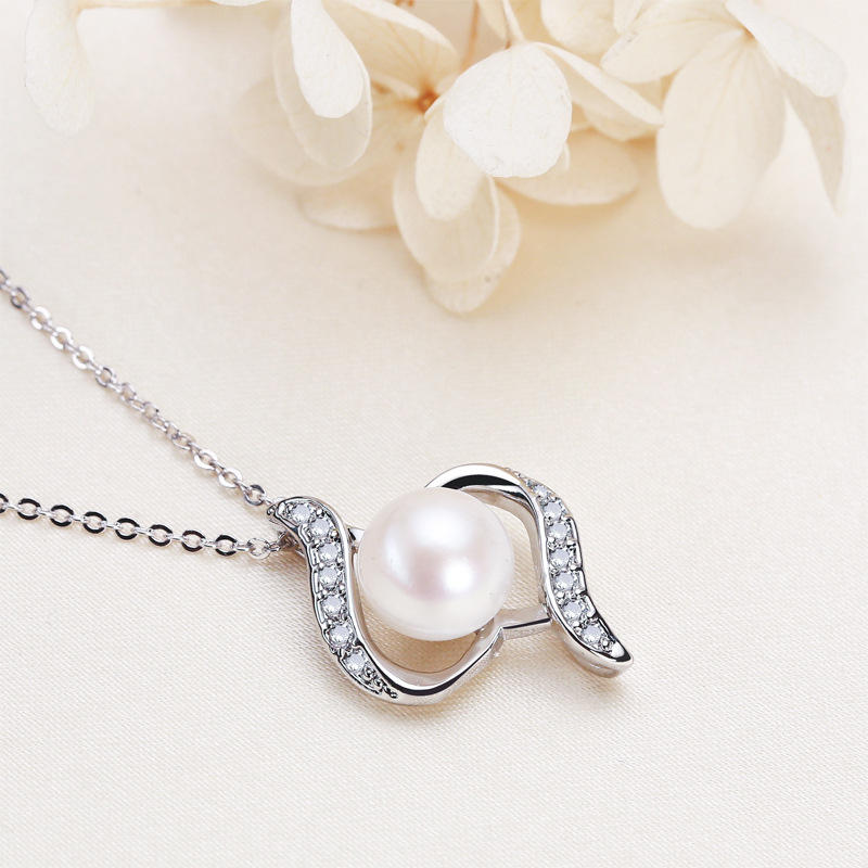 จี้เพชรซิคอนประดับทองคำขาวทันสมัย ขายส่ง พร้อมสร้อยคอไข่มุกน้ำจืดชุบทองแดง เครื่องประดับอเนกประสงค์