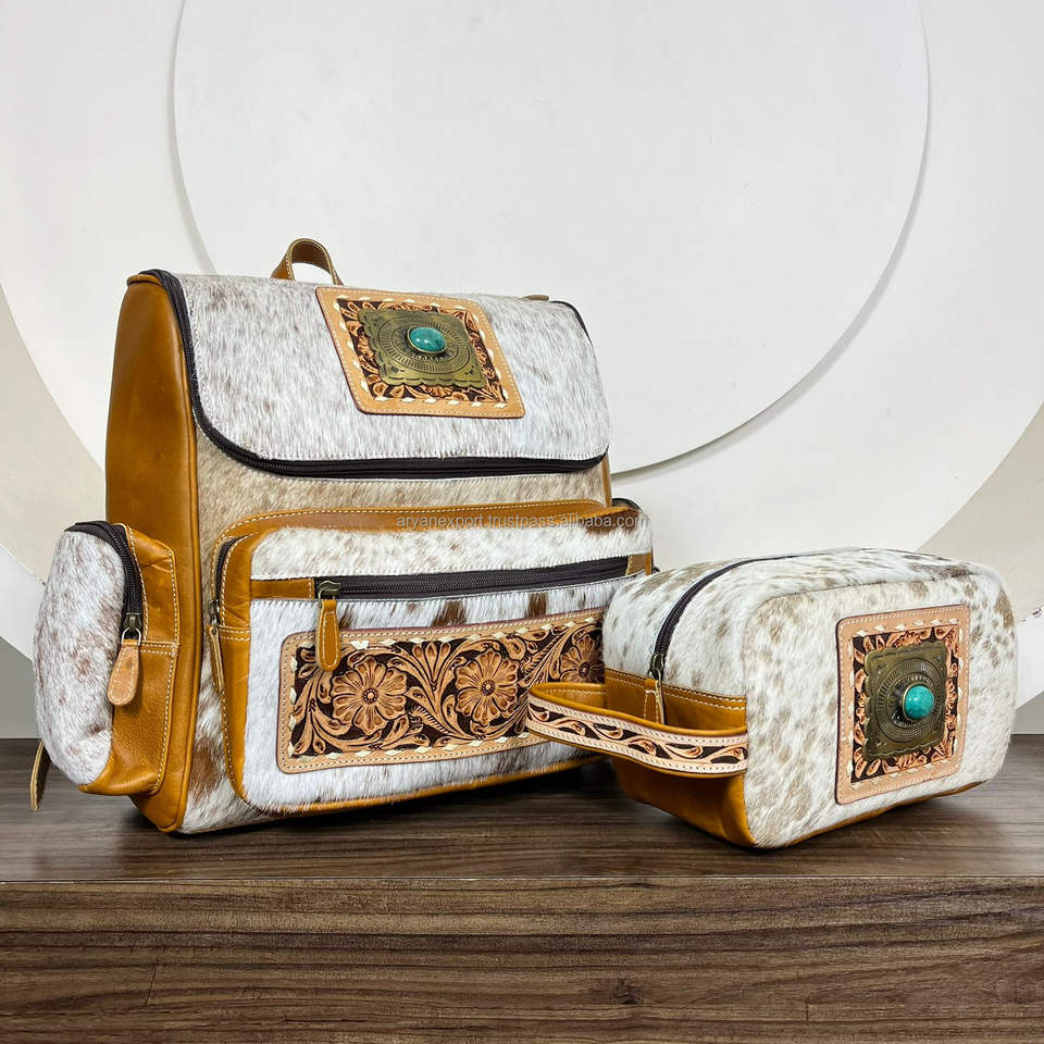 Product Name:Hand Tooled Leather Backpack with Toiletry Bag Set