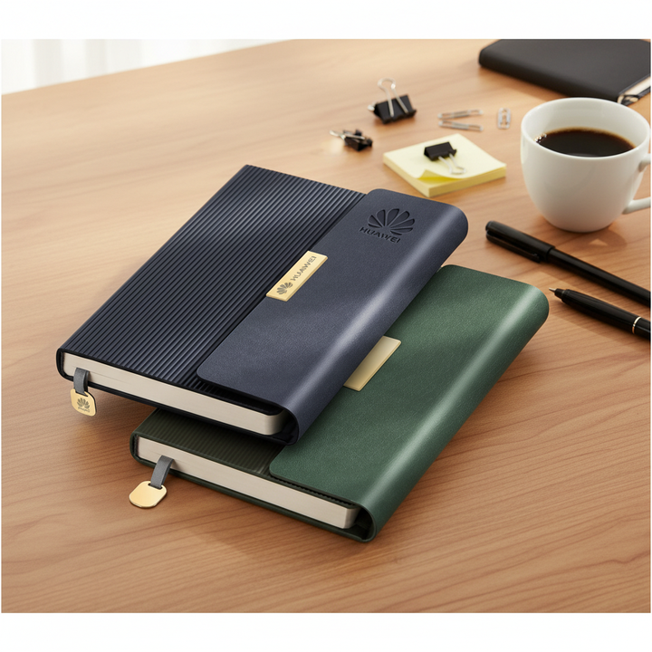 สมุดโน้ตหนังพับสามตอนแบบขายส่ง หรูหรา ขนาด A5 ปิดด้วยแม่เหล็ก พร้อมโลโก้ปั๊มนูนตามสั่ง ของขวัญสำหรับผู้บริหารในงานประชุม
