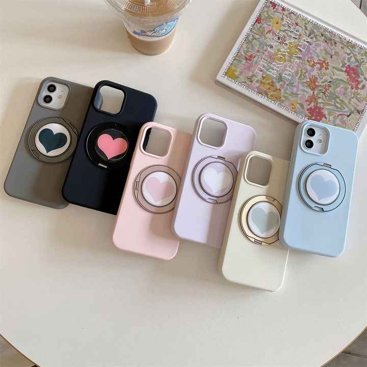 Wholesale True Liquid Silicone Love Phone Case with 360 Rotating Bracket Cell Phone Protector for iPhone 14 15 16 17 air Pro Max