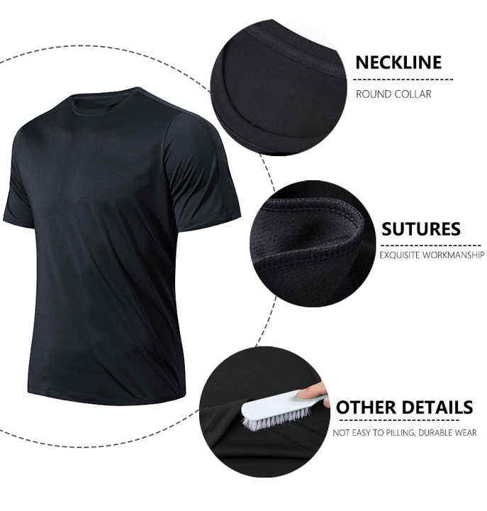 เสื้อยืดสำหรับผู้ชายเสื้อยืด2024ฟิตเนสเข้ารูปผ้าโพลีเอสเตอร์ระบายอากาศได้ดี
