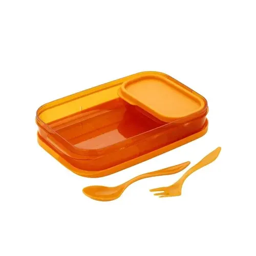 กล่องข้าวเก็บอุณหภูมิสำหรับเด็กนักเรียน สีส้ม 200 มล. ป้องกันการรั่วซึม ปลอดสาร BPA พร้อมช้อนส้อมพลาสติกแบบพับได้ 2 ชิ้น ขายส่ง