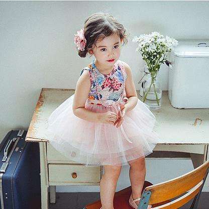ชุดเดรสเจ้าหญิงผ้าชีฟองแฟนซีสำหรับเด็ก ลายปักภาพ ใส่หน้าร้อน