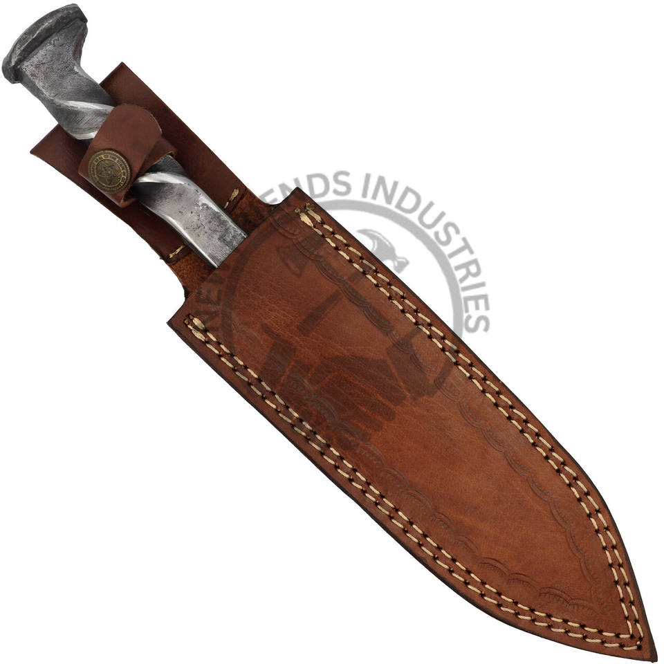 ปลอกหนังแท้สำหรับตั้งแคมป์แบบสองด้านใบมีดปลายแหลมแบบสองด้านด้ามจับบิดเกลียว