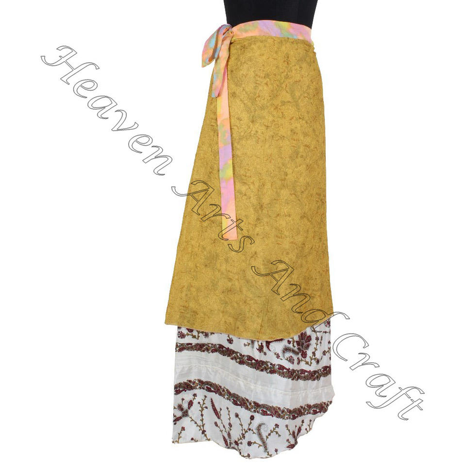 กระโปรงยาวผ้าไหมส่าหรี2ชั้นกระโปรงยาวเมจิกสไตล์โบฮีเมียนมีสไตล์โบฮีเมียนเสื้อผ้าแฟชั่นใส่สบายใส่ในฤดูร้อน