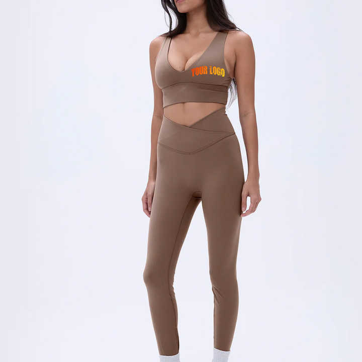 ชุดออกกำลังกายสองชิ้นขายส่ง เสื้อชั้นในกีฬาและกางเกงเลกกิ้ง ชุดโยคะฟิตเนสสำหรับผู้หญิง รับทำโลโก้ ชุดออกกำลังกายคุณภาพสูง