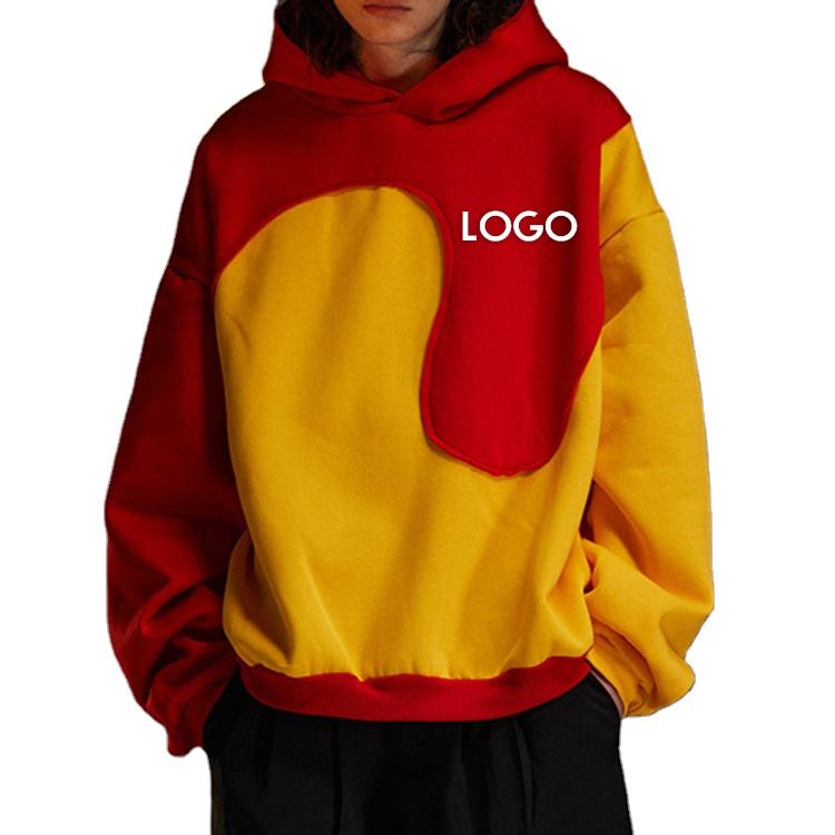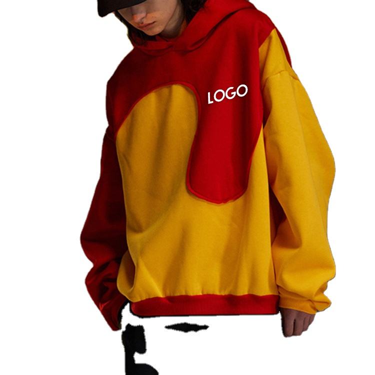 เสื้อฮู้ดสีทูโทนแบบขายส่ง ตัดต่อสีสันแบบแพทช์เวิร์ค ทรงโอเวอร์ไซส์ สำหรับผู้ชาย ปี 2026