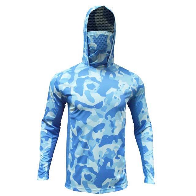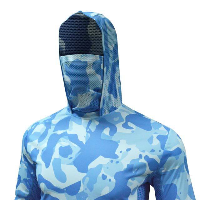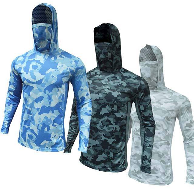 เสื้อตกปลามีฮู้ดสำหรับผู้ชายผ้าโพลีเอสเตอร์ผ้าสแปนเด็กซ์คอขึ้นรูป50 +
